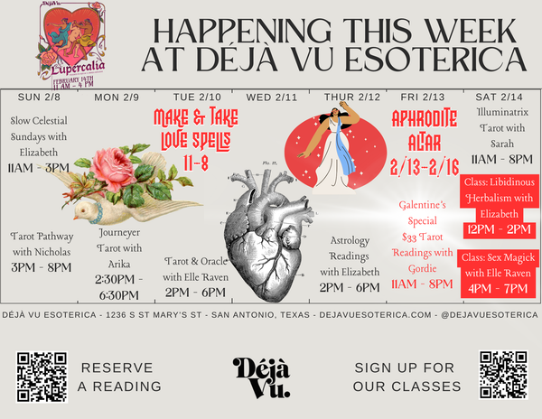 Come shop the incredible selection of handmade goods and artisan crafts at our first ever Lupercalia market, February 14th from 11am till 4pm! During the market we'll be hosting Sarah Gabriel of Illuminatrix Tarot in the reading room, plus Elizabeth Martin's Hands-On Libidinous Herbalism workshop in our classroom, and later, Elle Raven's Sex Magick for Couples date night!